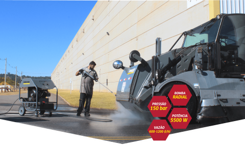 Hidrolimpiadora de alta presión con agua caliente equipada con bomba refrigerada por agua que garantiza un alto rendimiento y una mayor vida útil del equipo. Dimensionado para uso continuo y diario.